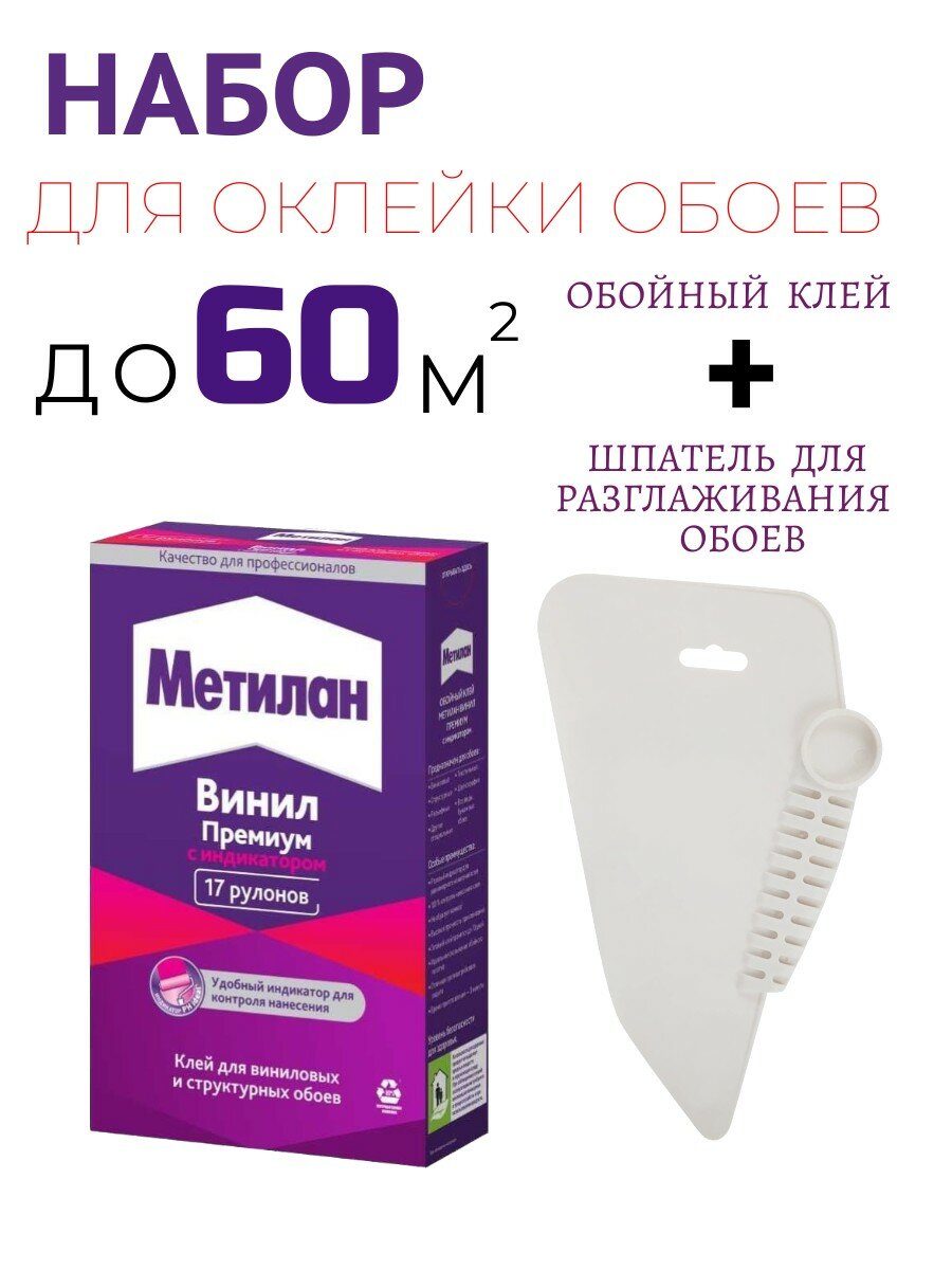 Клей для бумажных и виниловых обоев Метилан с индикатором, клей обойный, 60м 500 г