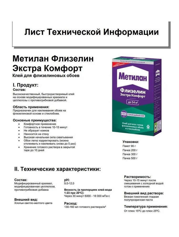 Метилан Флизелин Ультра Премиум клей обойный (500г) / METYLAN Флизелин Ультра Премиум клей для флизелиновых обоев (0,5кг)
