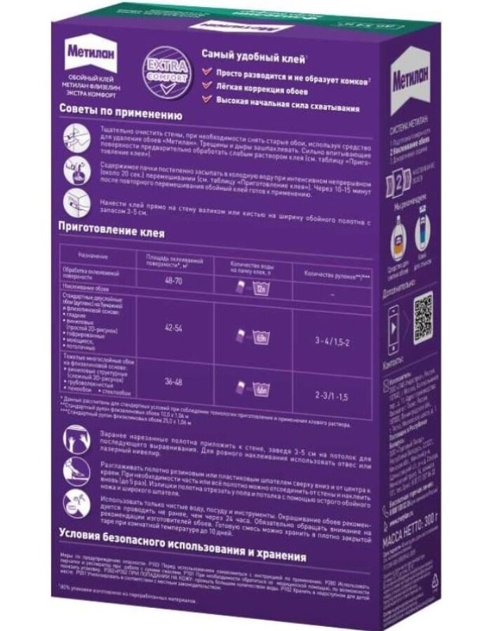 Метилан Флизелин Ультра Премиум клей обойный (250г) / METYLAN Флизелин Ультра Премиум клей для флизелиновых обоев (0,25кг)