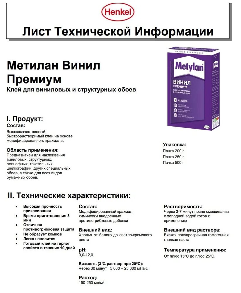 Клей для Обоев Метилан Премиум Ультра Флиз 250ГР (18) Хенкель .