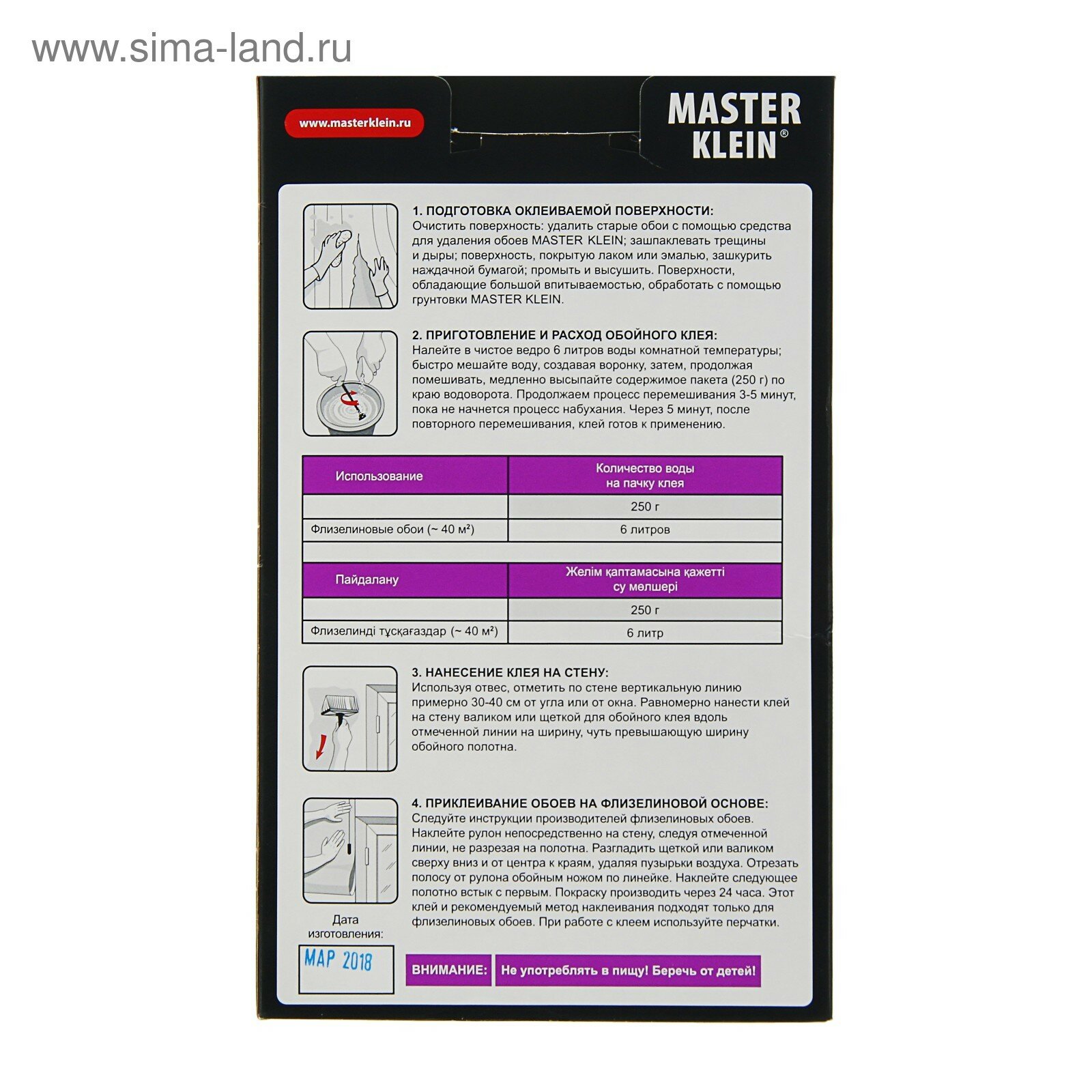 Клей обойный Master Klein, для флизелиновых обоев, 250 гВ наборе1шт