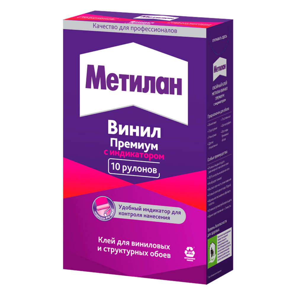 Метилан Винил Премиум с индикатором клей обойный (500г) / METYLAN Винил Премиум с индикатором клей для виниловых обоев (0,5кг)