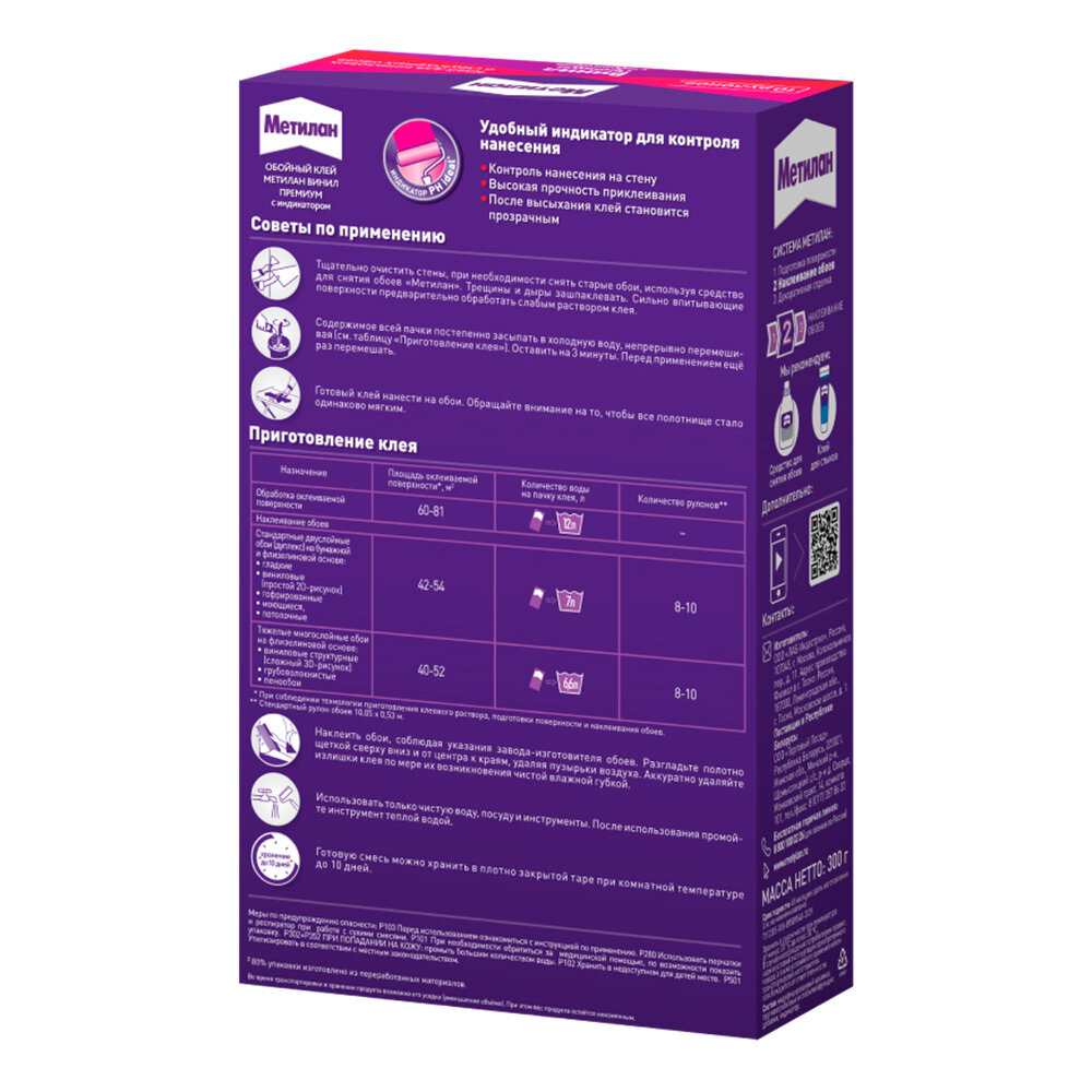 Метилан Винил Премиум с индикатором клей обойный (300г) / METYLAN Винил Премиум с индикатором клей для виниловых обоев (0,3кг)