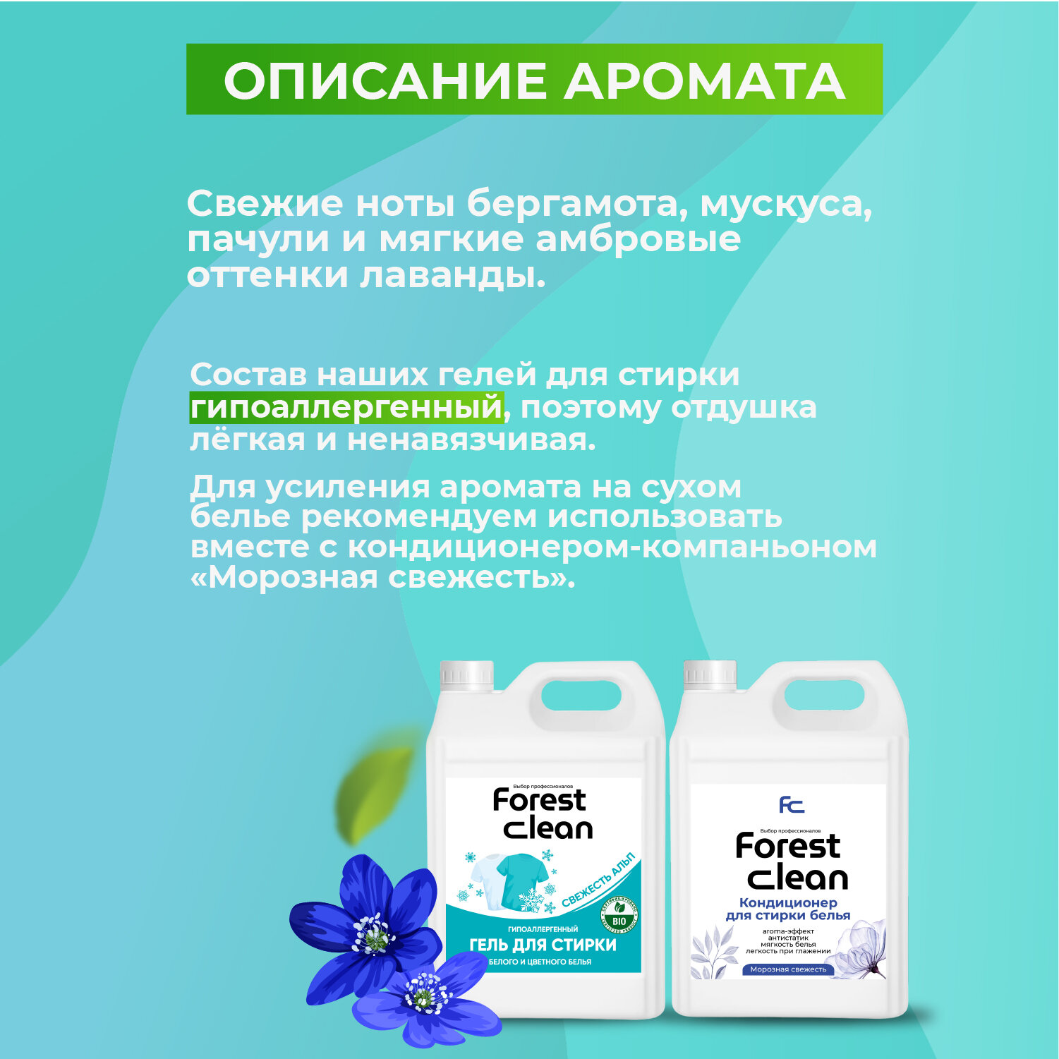 Гель для стирки белья универсальный аромат Свежесть Альп Forest Clean 2 л