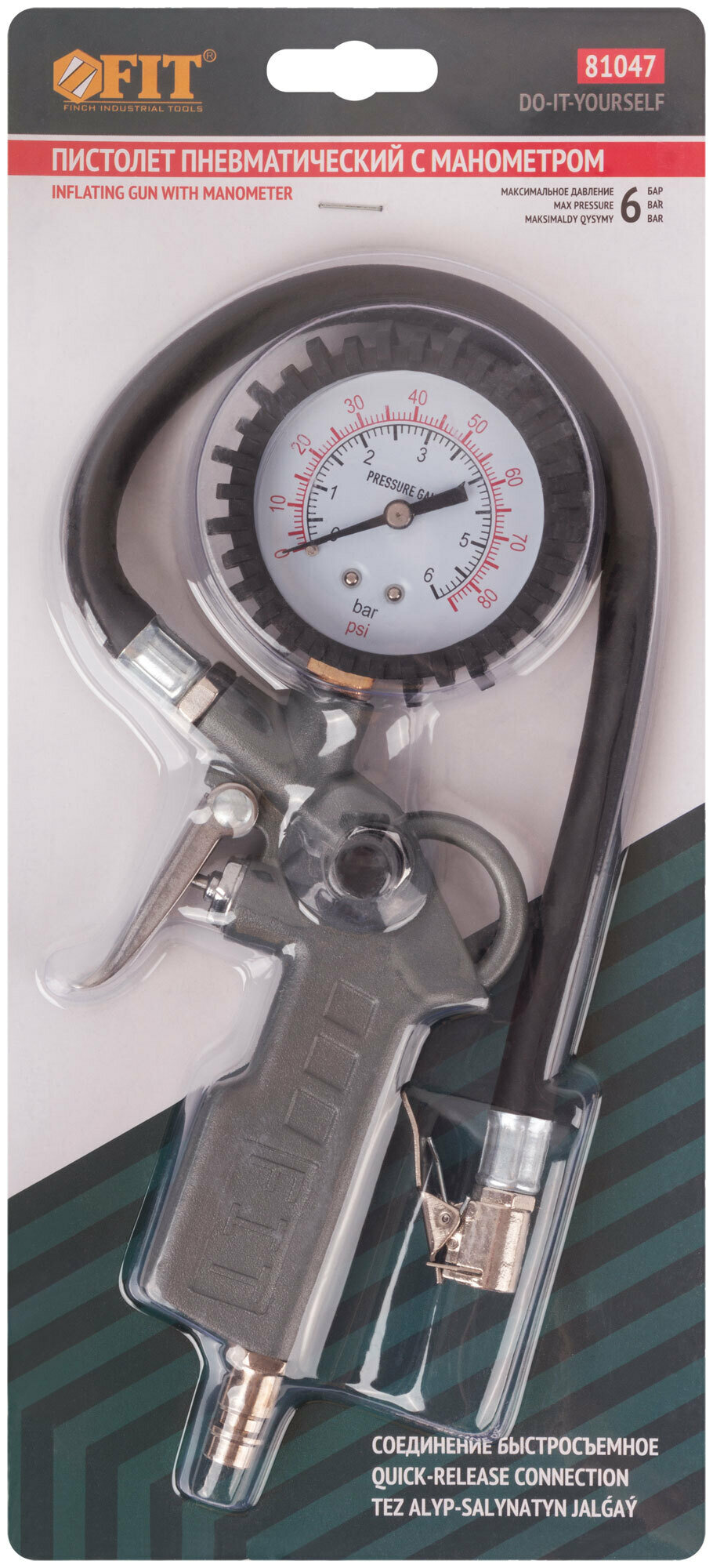 Пистолет с манометром, быстросъемное соединение FIT 81047