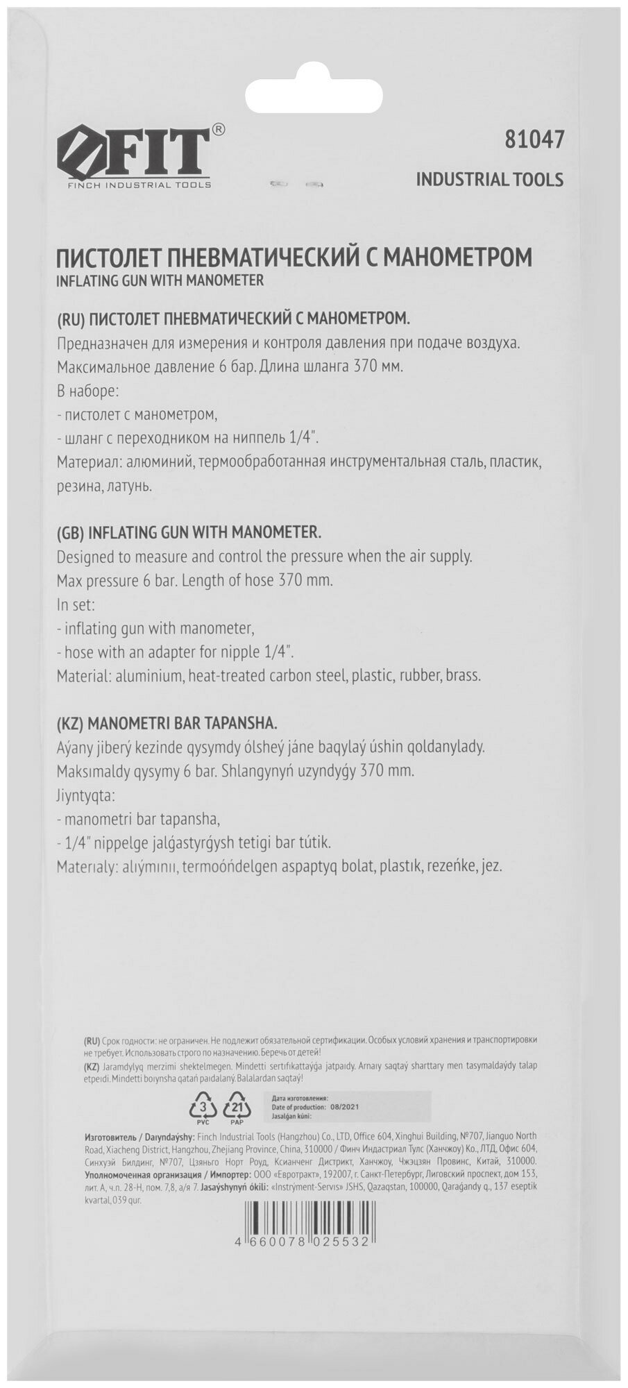 Пневмопистолет с манометром, быстросъемное соединение FIT 81047 интересное: