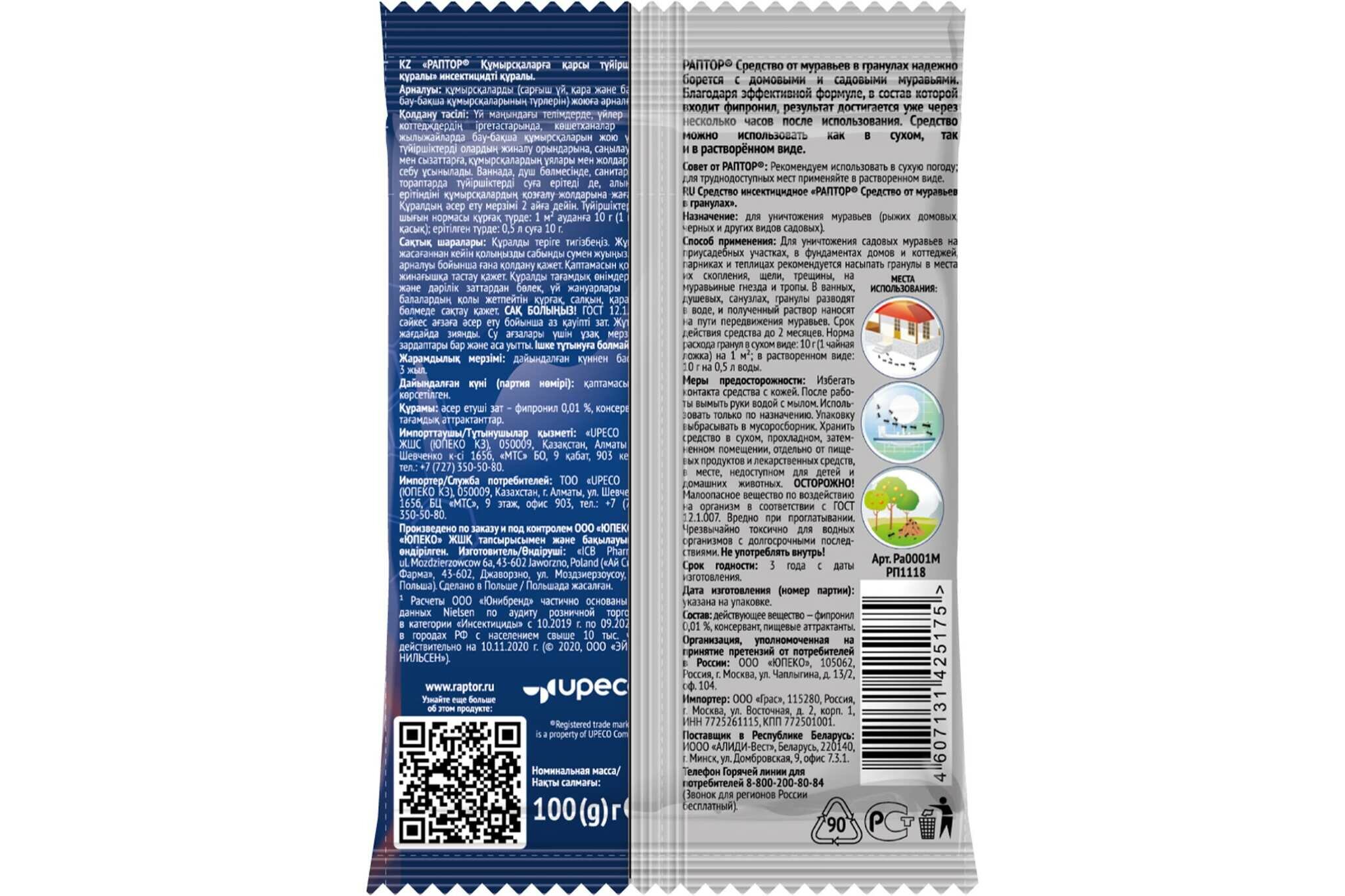 Средство от муравьев Раптор в гранулах 1 саше 100г./В упаковке шт: 1