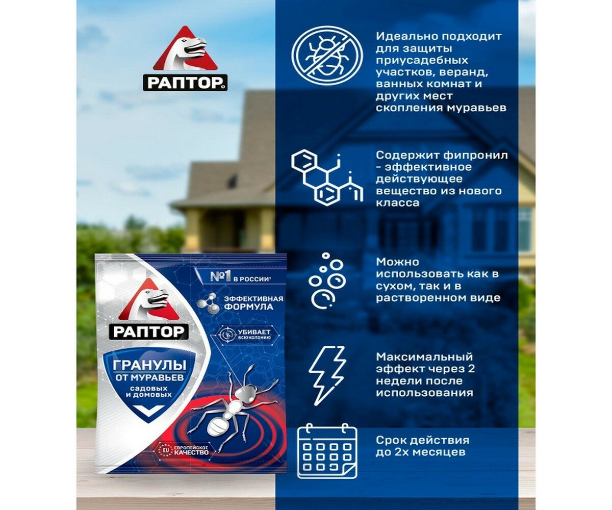 Гранулы от муравьев, Раптор, домашних и садовых, 100г