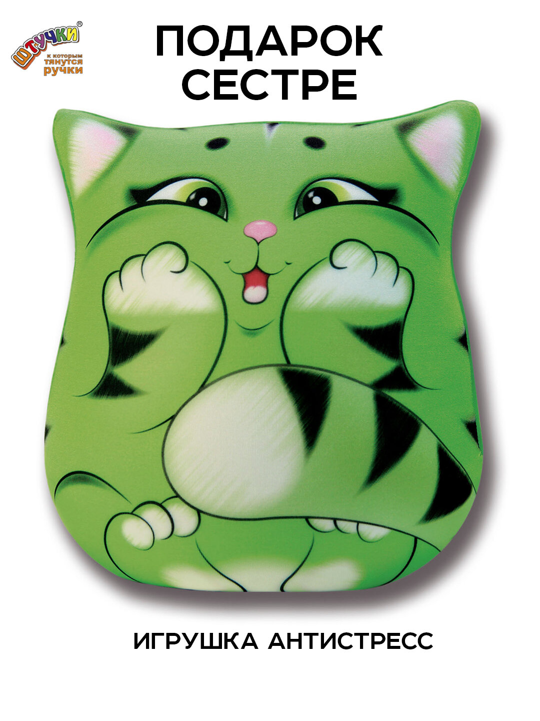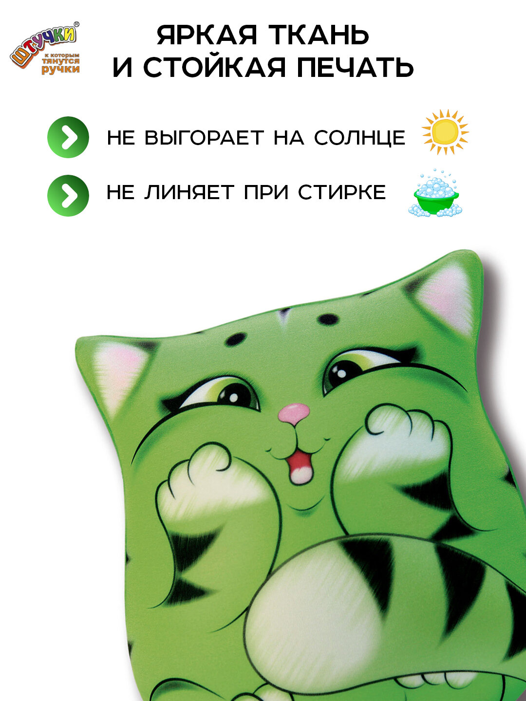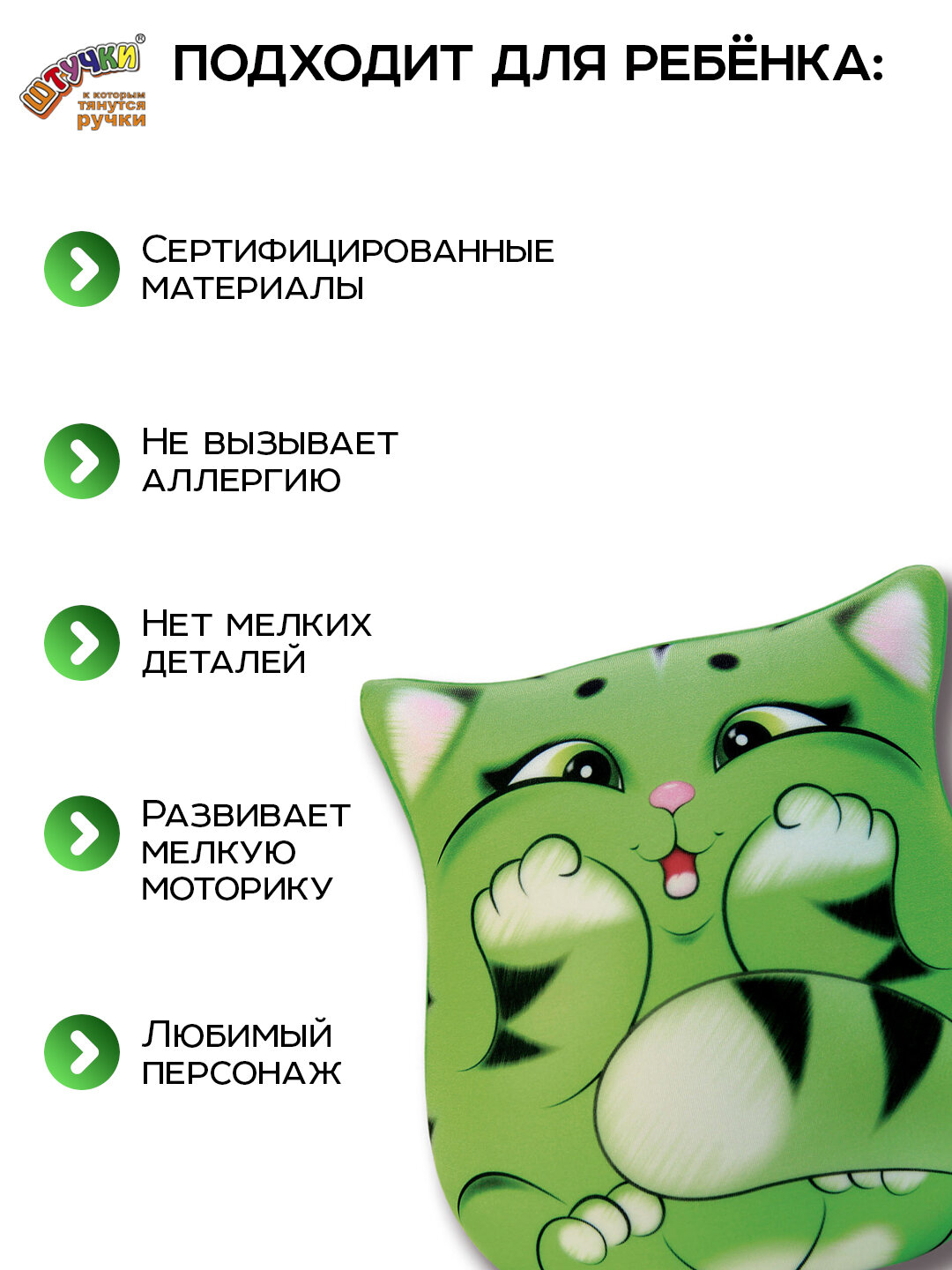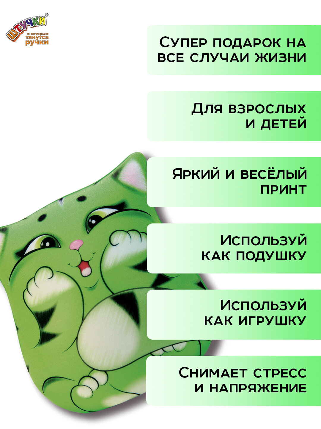 Купить Штучки, к которым тянутся ручки/ Мягкая игрушка - подушка антистресс Плюшка Котя, зеленый