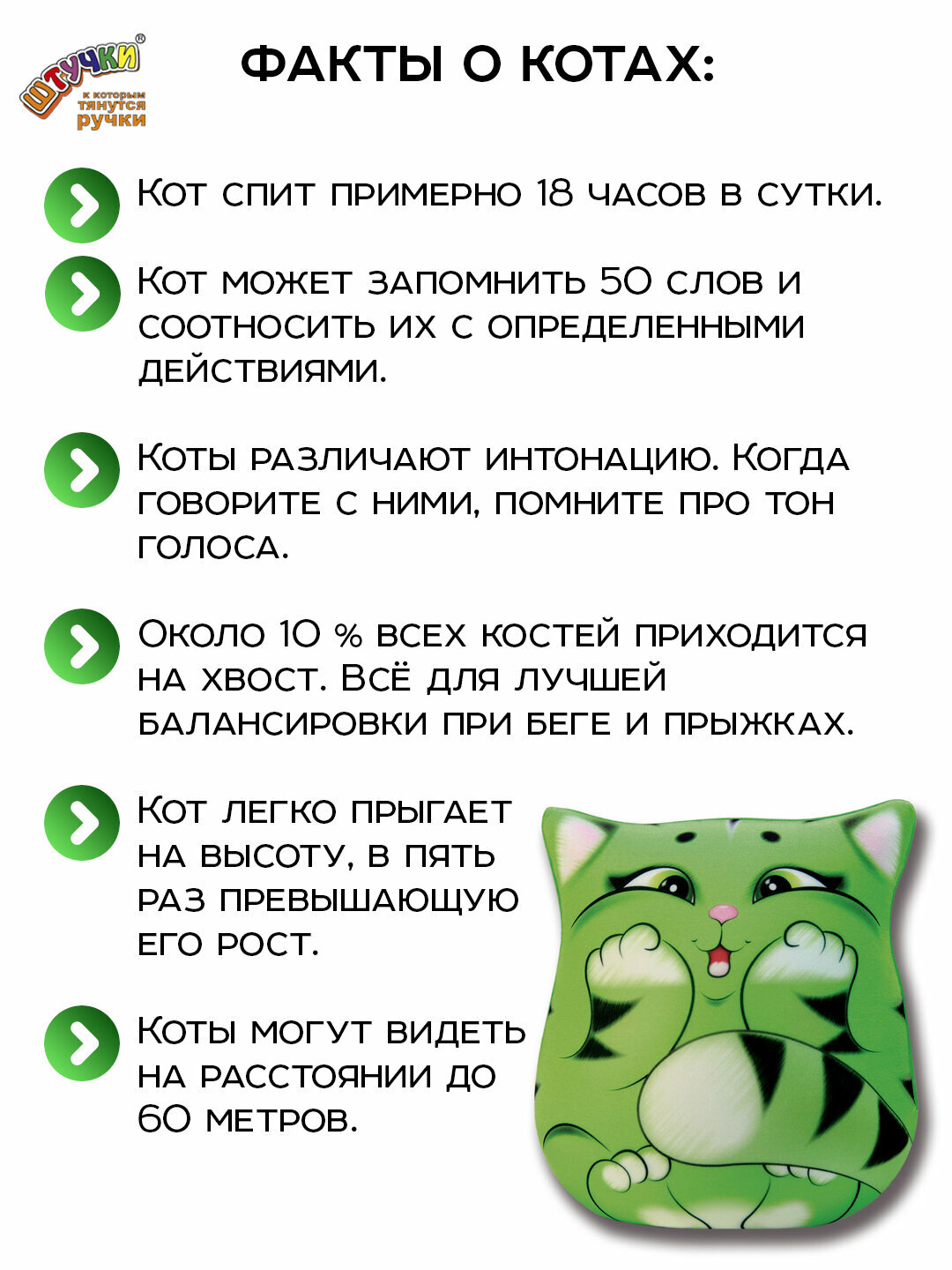СохранитьШтучки, к которым тянутся ручки/ Мягкая игрушка - подушка антистресс Плюшка Котя, зеленый интересное: