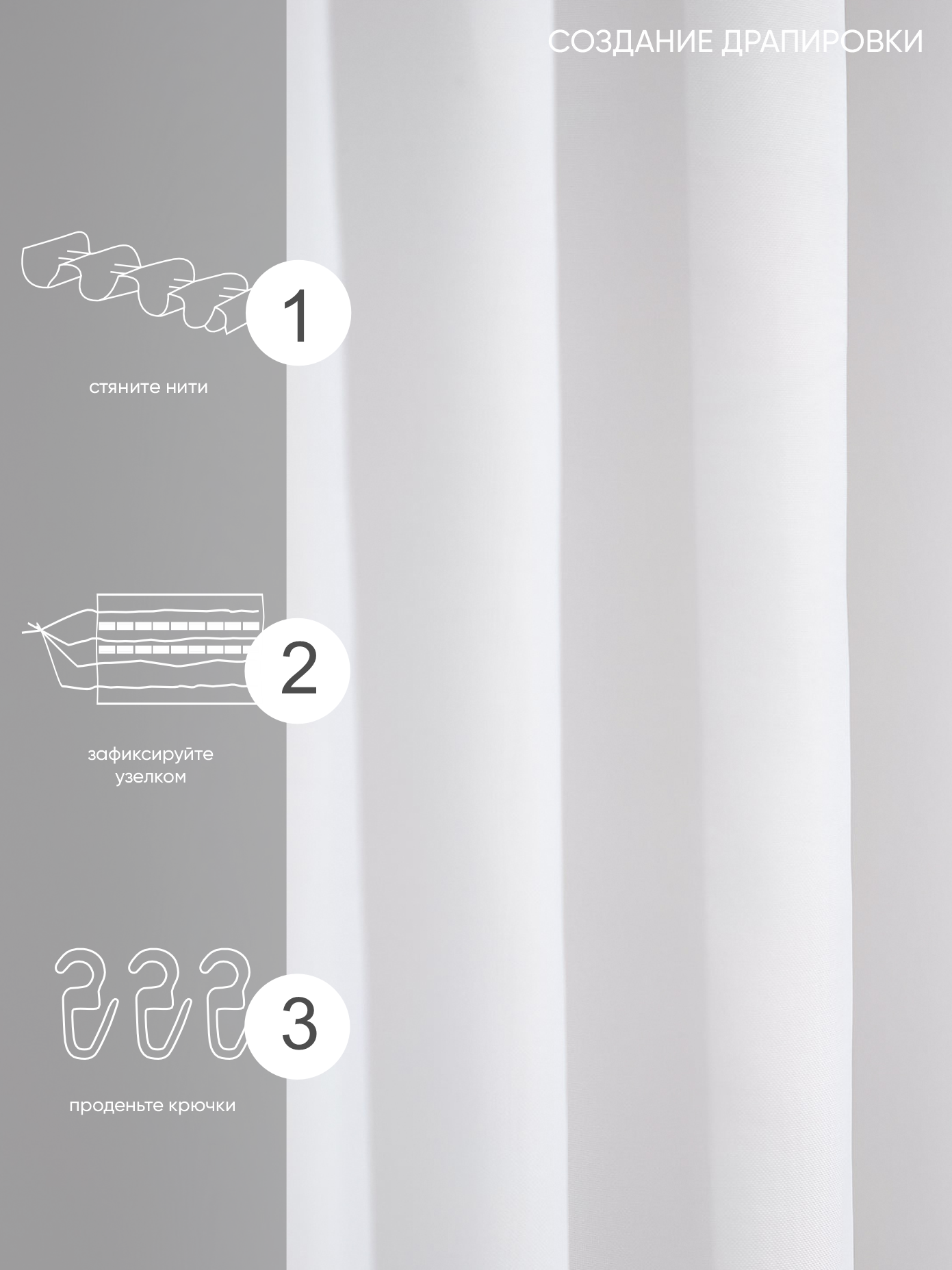 Тюль Вуаль со шторной лентой 300 х 285 см, белый, занавески в комнату, штора, тюль для комнаты
