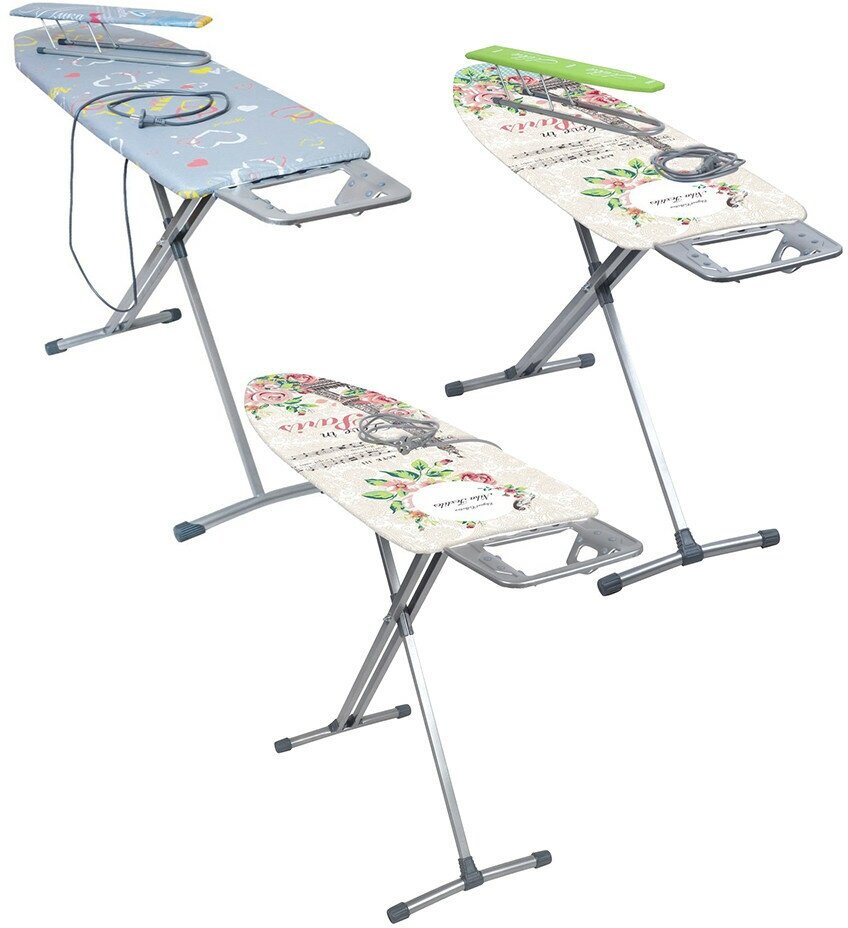 | Плюсы: | Широкая удобная доска, есть подставка и розетка для утюга. Понравилась расцветка! Ножки устойчивые и высота хорошо регулируется. |