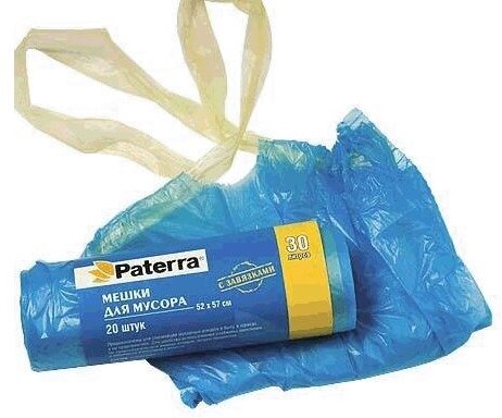 Мешки для мусора Paterra Синие, с завязками, 12 мкм, в рулоне, 35 л, 20 шт