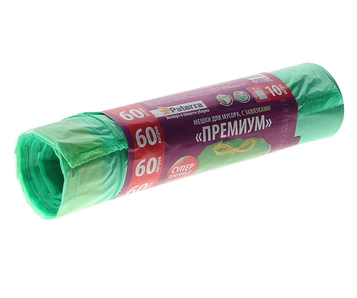 Мешки для мусора Paterra "Premium", ПВД, с завязками, 60 л, 10 шт