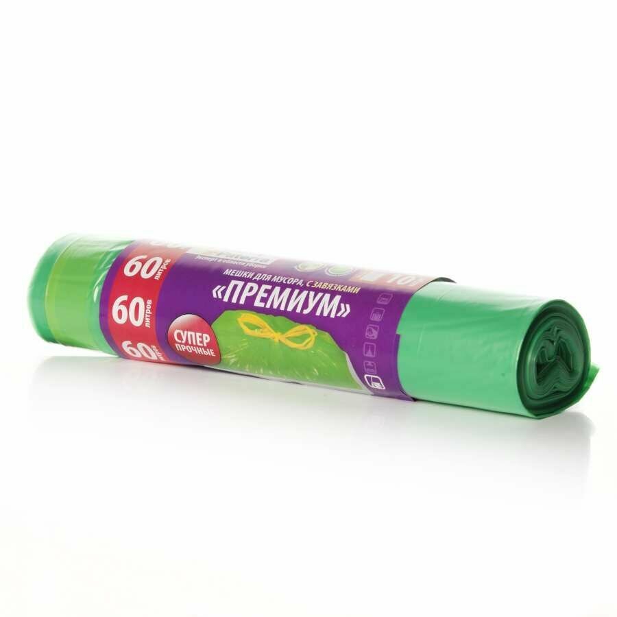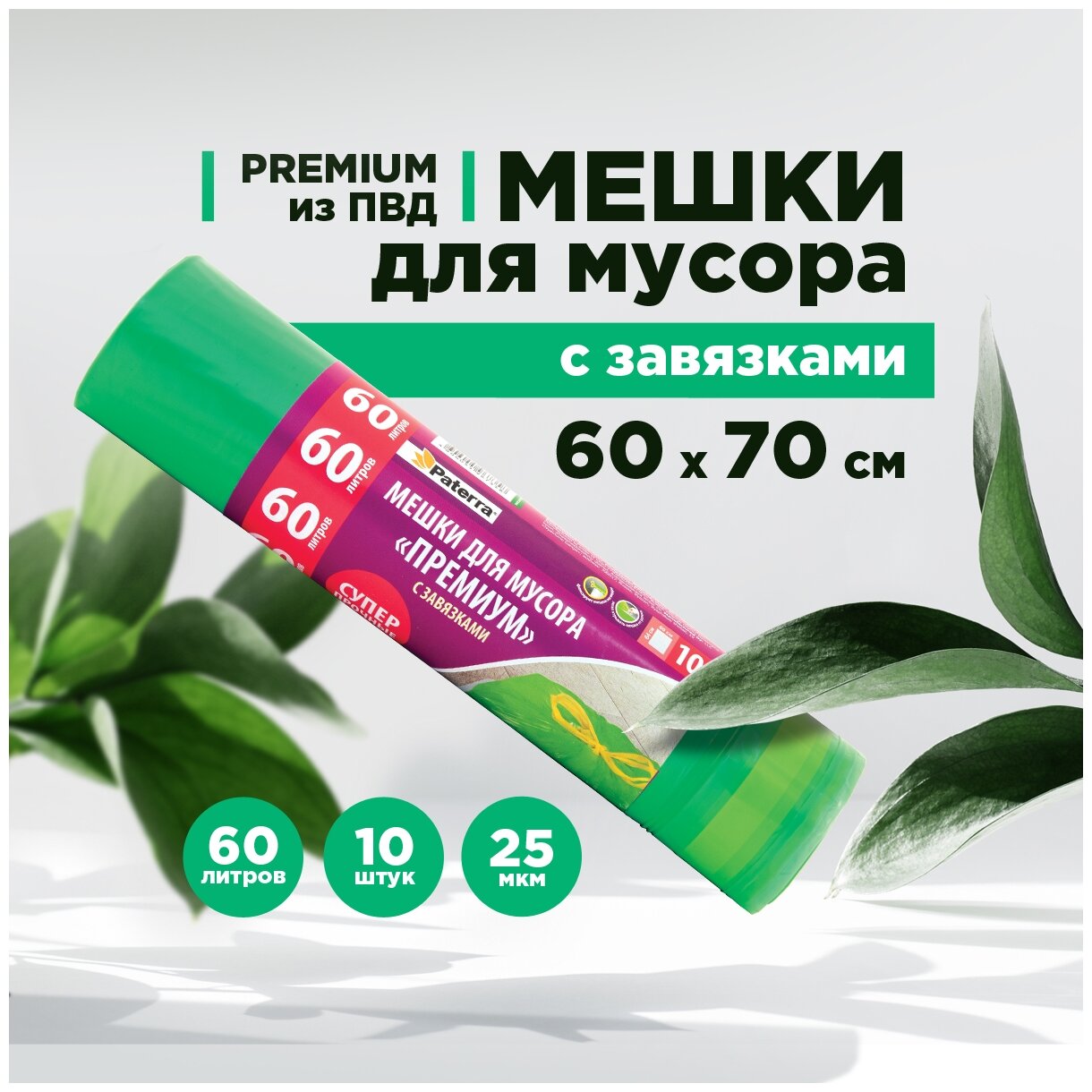 Мешки для мусора PREMIUM (10 шт; 60 л) с завязками зеленые PATERRA 106-008