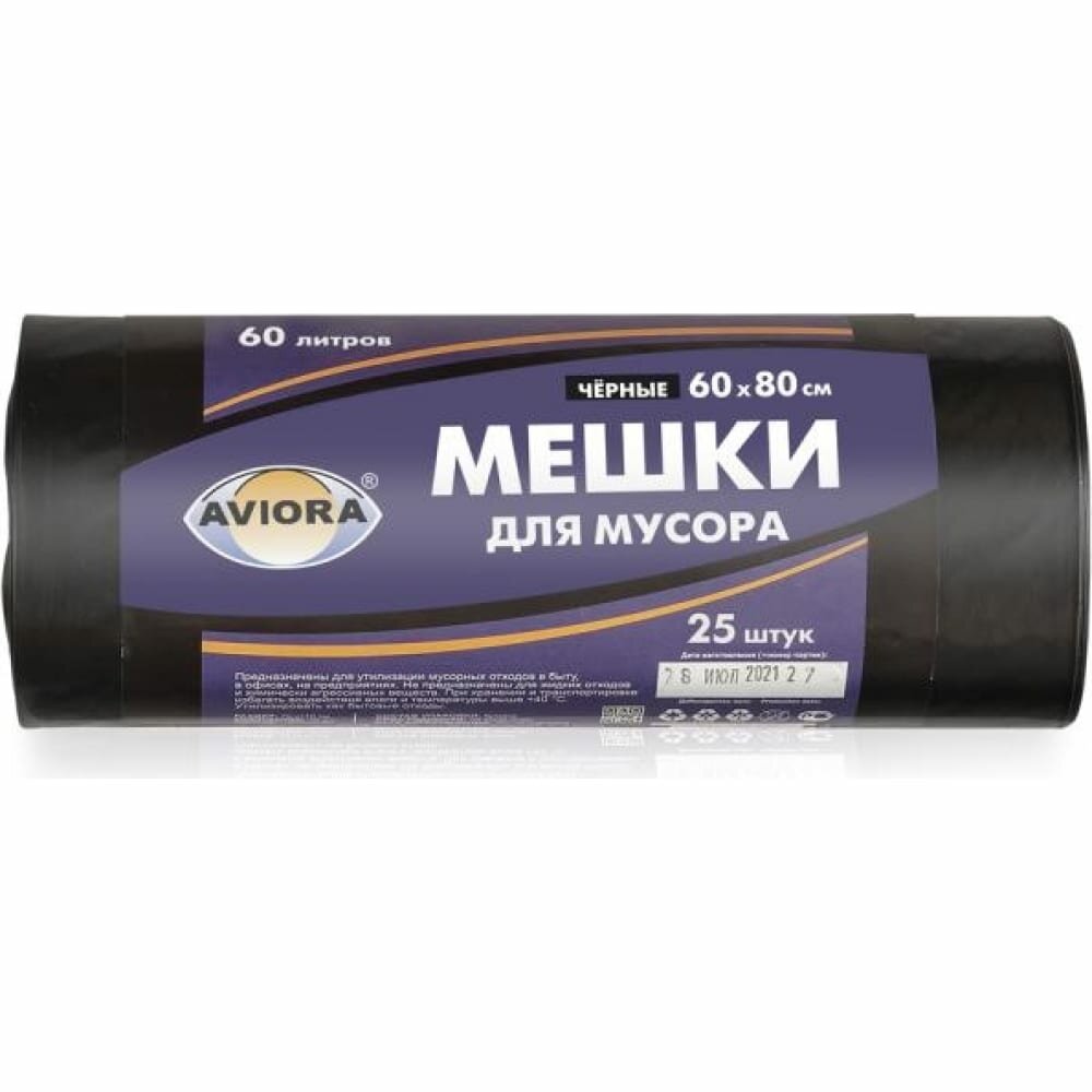 Мешки для мусора 60л, 60*80см "AVIORA",25шт в рулоне
