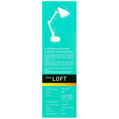 Лампа офисная Camelion Loft KD-331, E27, 40 Вт, белый