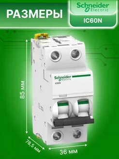Автоматический выключатель Schneider Electric Acti9 iC60N, 2 полюса, 63A, тип C, 6kA