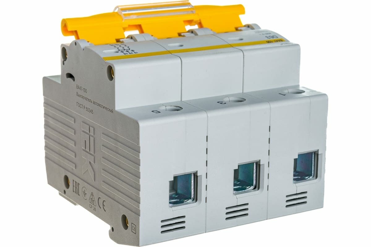 Выключатель автоматический модульный 3п D 100А 10кА ВА47-100 IEK MVA40-3-100-D (1 шт.)