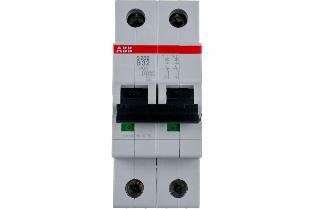 ABB Автоматический выключатель двухполюсный B 32А 6кА S202