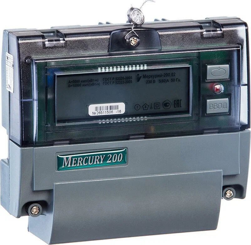 Счётчик электроэнергии Меркурий 200.02 5-60А / ЖКИ / 1 фаза / 2 тарифа