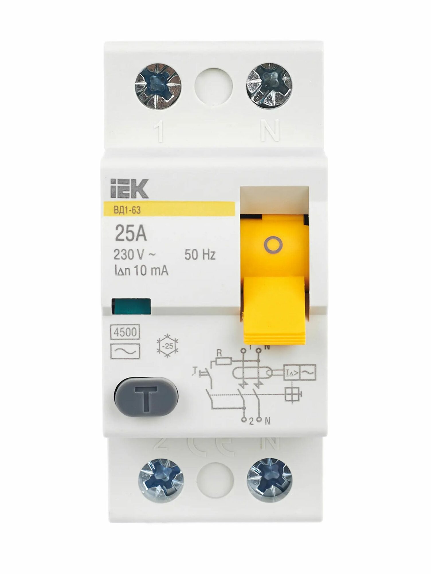 Ниже Вы можете прочитать отзывы на Устройство защитного отключения (УЗО) полюсный (2P) 25А 10мА тип AC ВД1-63 IEK, ознакомится с подробными характеристиками, посмотреть интересные обзоры и фотографии на Устройство защитного отключения (УЗО) полюсный (2P) 25А 10мА тип AC ВД1-63 IEK.