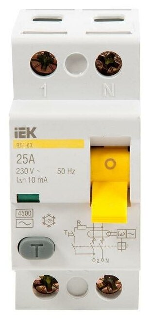 СохранитьУстройство защитного отключения (УЗО) полюсный (2P) 25А 10мА тип AC ВД1-63 IEK интересное: