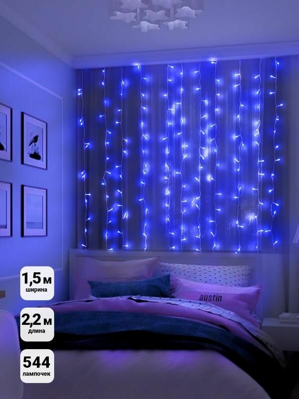 СохранитьГирлянда Занавес LDCL544-B-E 544 син. светодиодов 1.5х2.2м 16 нитей соединяемый до 8шт для помещени, SHLIGHTS 4690601035561 (1 шт.) интересное: