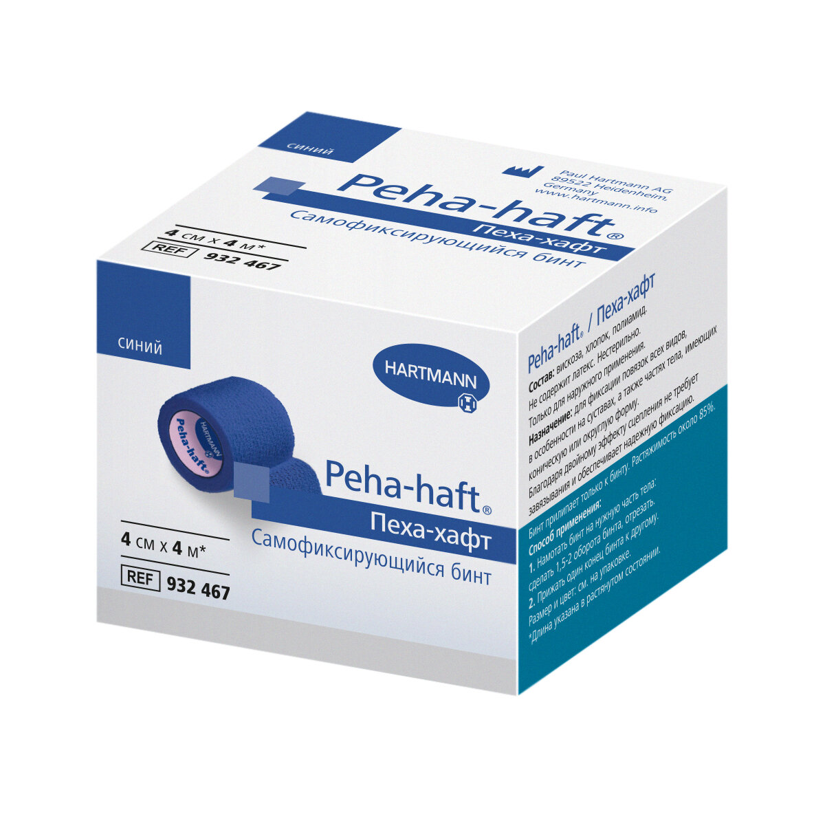Hartmann бинт самофиксирующийся Peha-haft синий, 4м х 8 см, 1 шт.