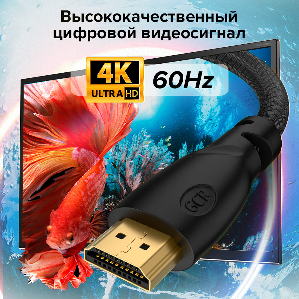 Кабель HDMI 2.0 нейлон Ultra HD 4K 60Hz 18 Гбит/с 3D для Apple TV 24K (GCR-HM800) черный 2.0м