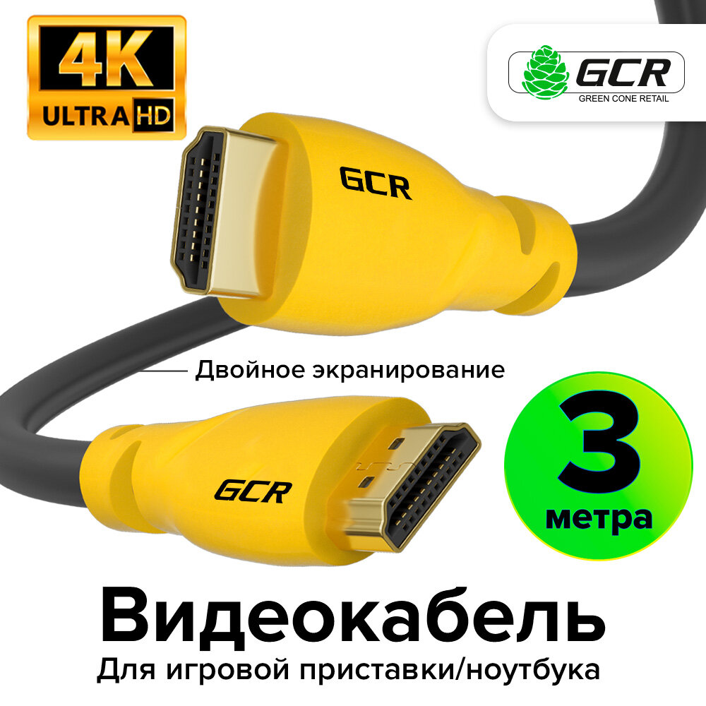 Купить Кабель HDMI 2.0 4K UltraHD HDR 3D 18 Гбит/с для PS4 PS5 Smart TV двойное экранирование (GCR-HM301) черный;желтый 3.0м