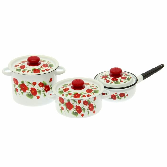 Набор посуды эмалированной "Фиалки", 3 предмета: кастрюли 2 л, 3,5 л, ковш с крышкой 1,5 л