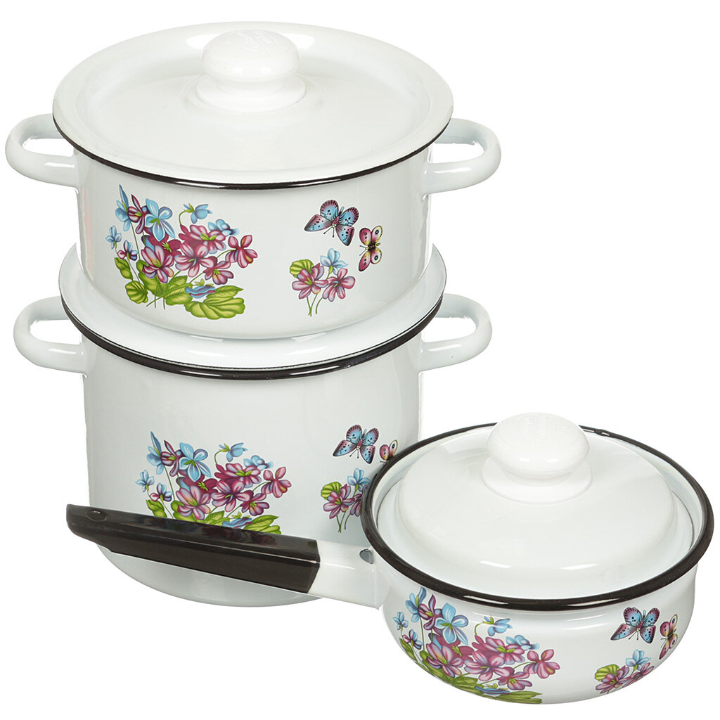 Купить Сибирские товары Набор посуды «Фиалки», 3 предмета: 2 л, 3,5 л, ковш 1,5 л, эмалированные крышки, индукция, цвет микс