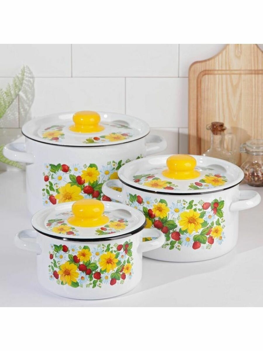Стальэмаль Набор кастрюль "Земляника", 3 предмета: 1,5 л, 2,9 л, 4,5 л