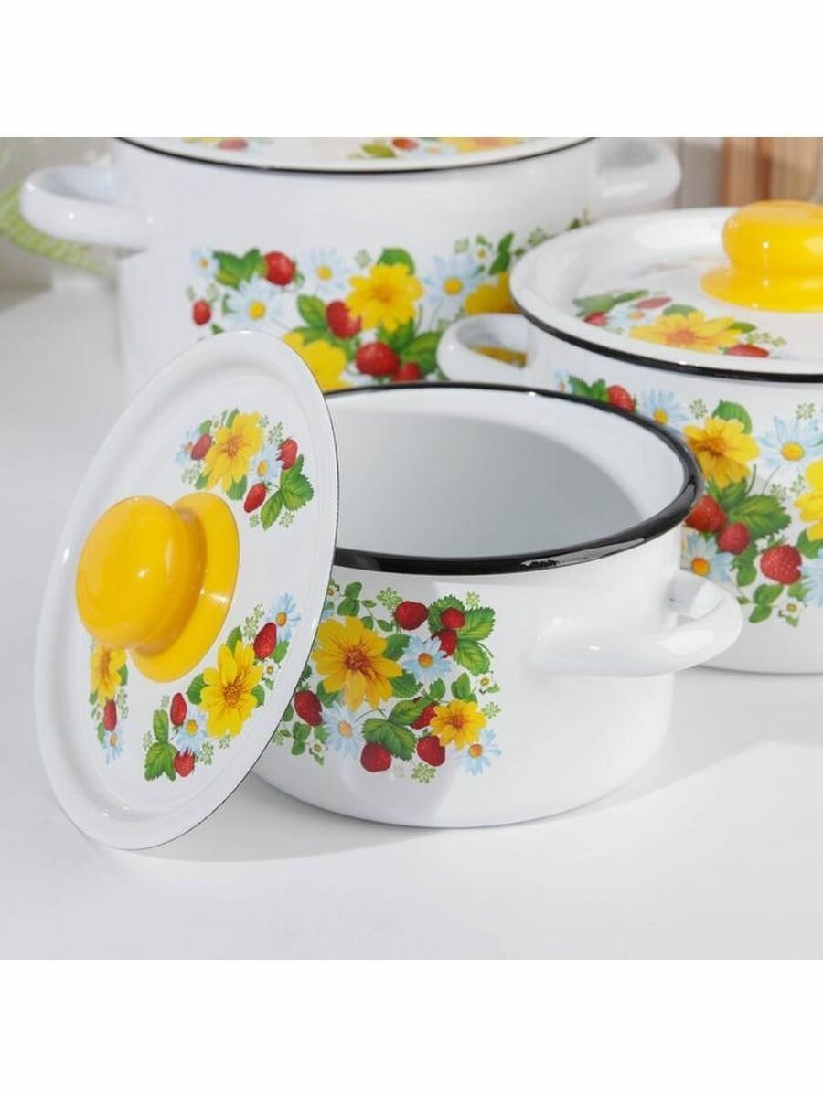 Набор кастрюль "Земляника", 3 предмета: 1.5 л, 2.9 л, 4.5 л, эмалированные крышки, индукция, цвет белый