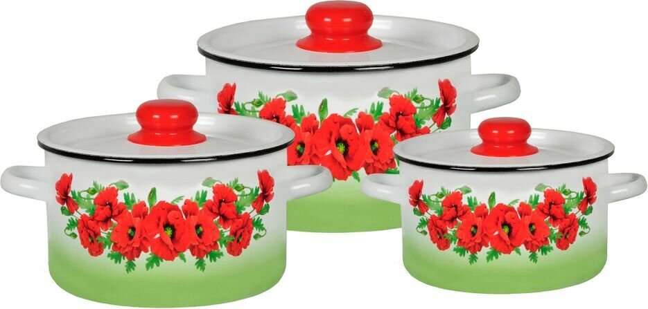 Набор кастрюль стальэмаль №144 Восточный мак белосн.