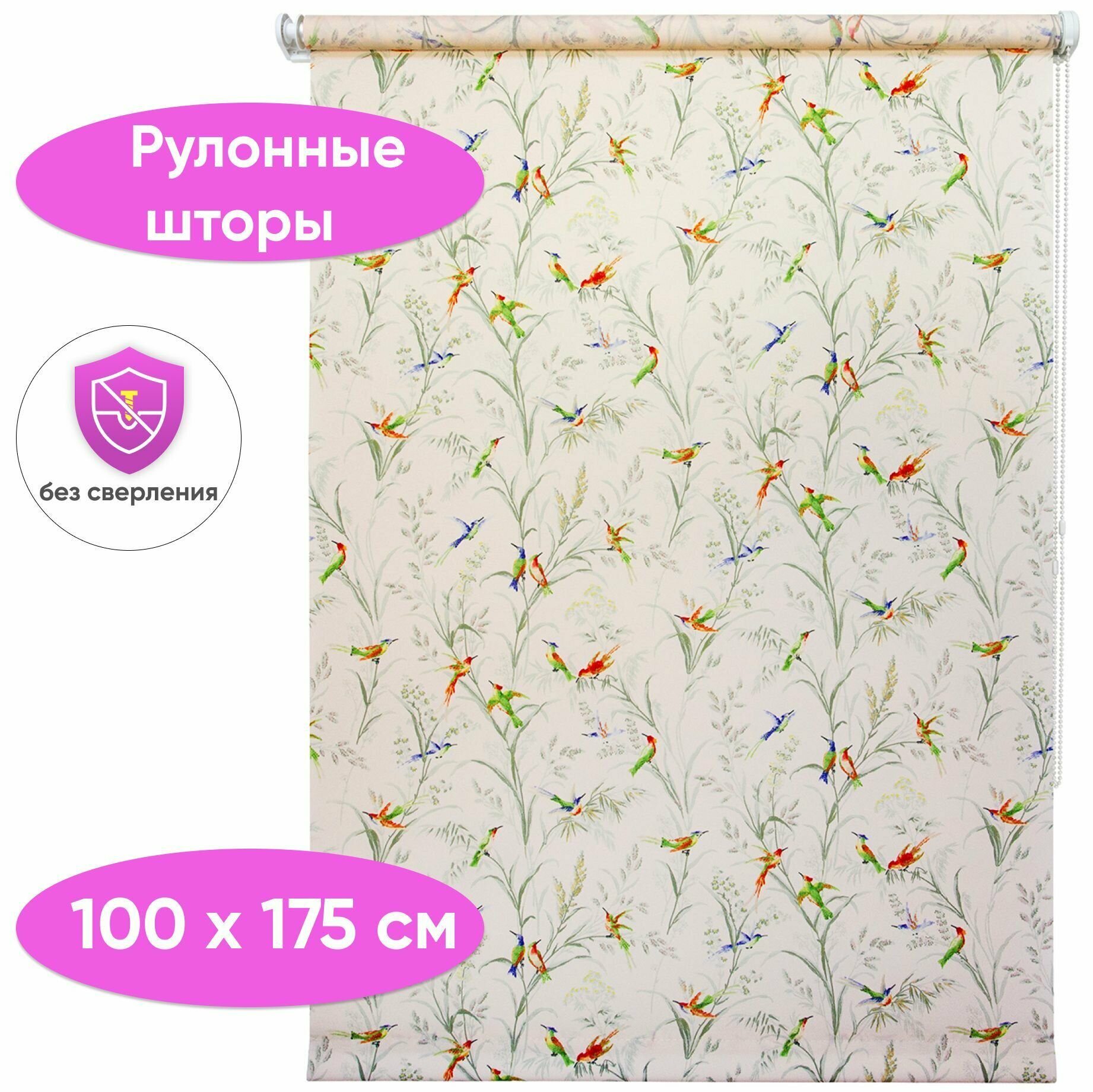 Купить Рулонные шторы с рисунком цветов 100 x 175 см Жалюзи на окна с фотопечатью принта "Вермонт" белый