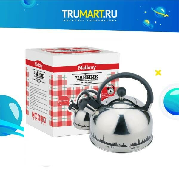 Чайник со свистком Mallony MAL-CITY-01 2,8 л, с рисунком, нержавеющая сталь