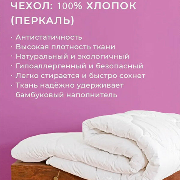 Одеяло облегченное бамбук 1,5-спальное (140x205 см) "Бамбук", чехол - перкаль (100% хлопок), Ecotex