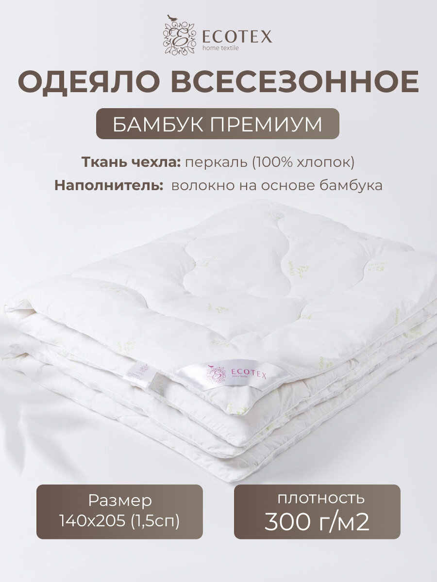 Одеяло Ecotex Бамбук Премиум (140х205 см), бамбуковое волокно, всесезонное