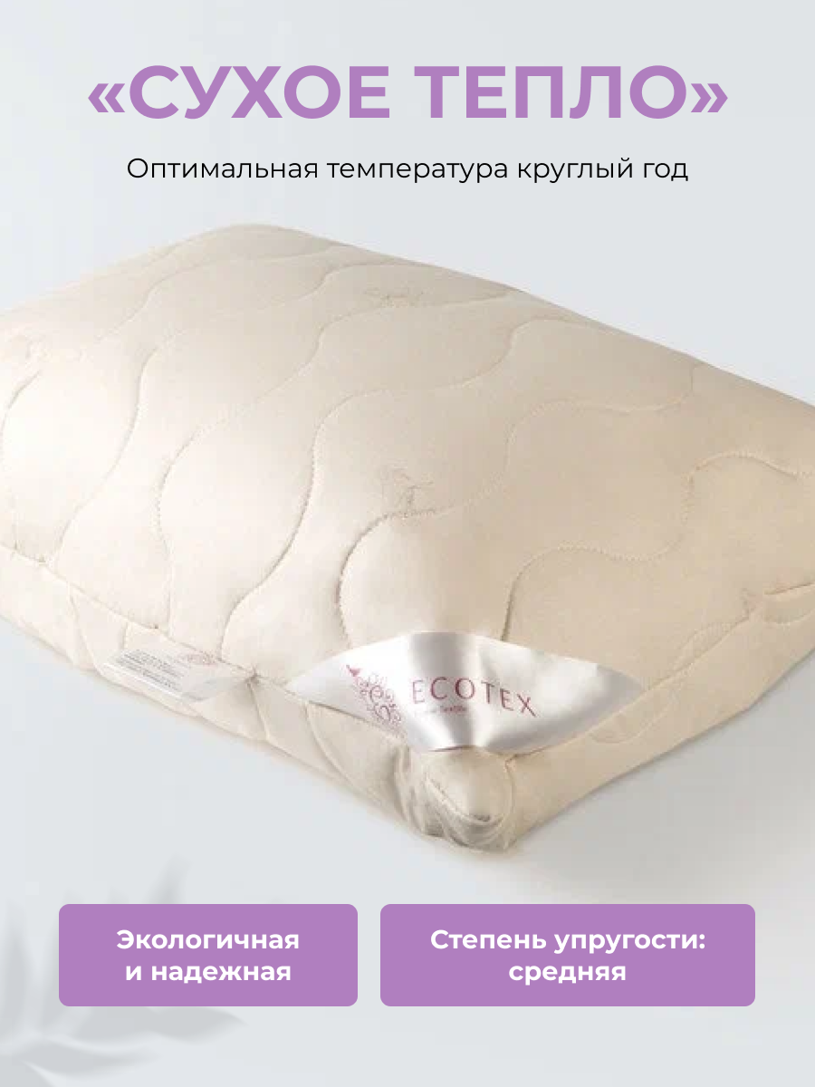 Ecotex Подушка для сна шерстяная Золотое Руно 70x70 овечья шерсть ПЗР77 .