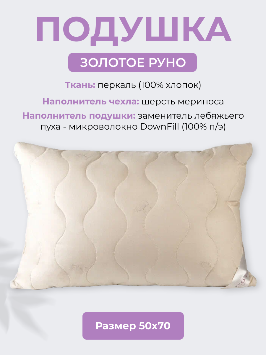 СохранитьПодушка для сна шерстяная Ecotex Золотое Руно 50х70 овечья шерсть интересное: