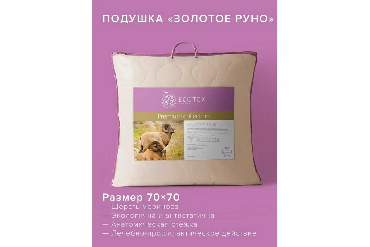 Ecotex Подушка для сна шерстяная Золотое Руно 70x70 овечья шерсть ПЗР77 .