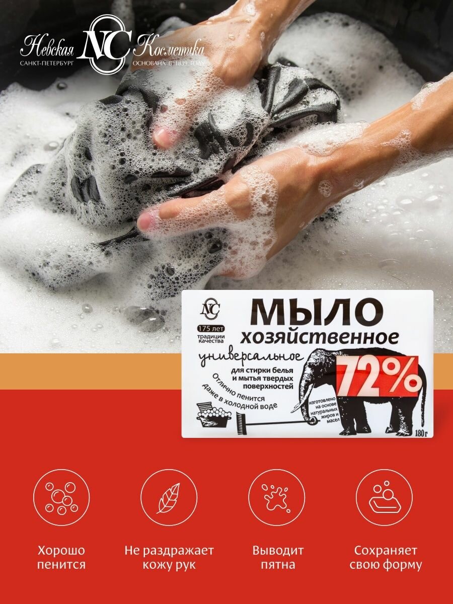 Мыло Невская косметика, хозяйственное, универсальное 72 %, 180 г