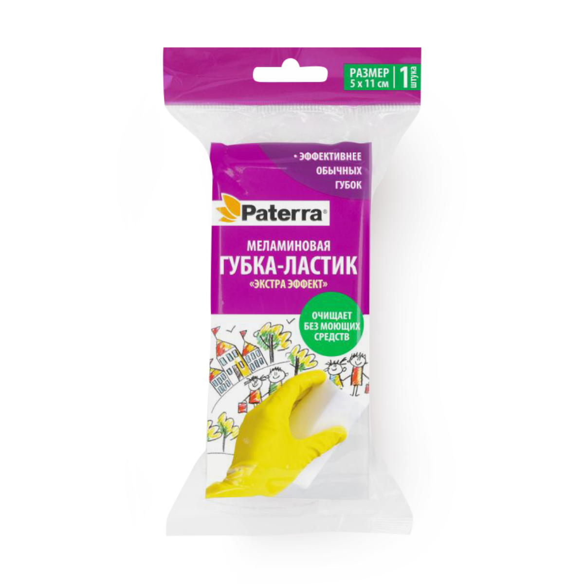 Губка меламиновая "EXTRA ЭФФEKT", PATERRA 52*110*40 мм, 1 шт. в пакете с подвесом (сырье премиум-класса)