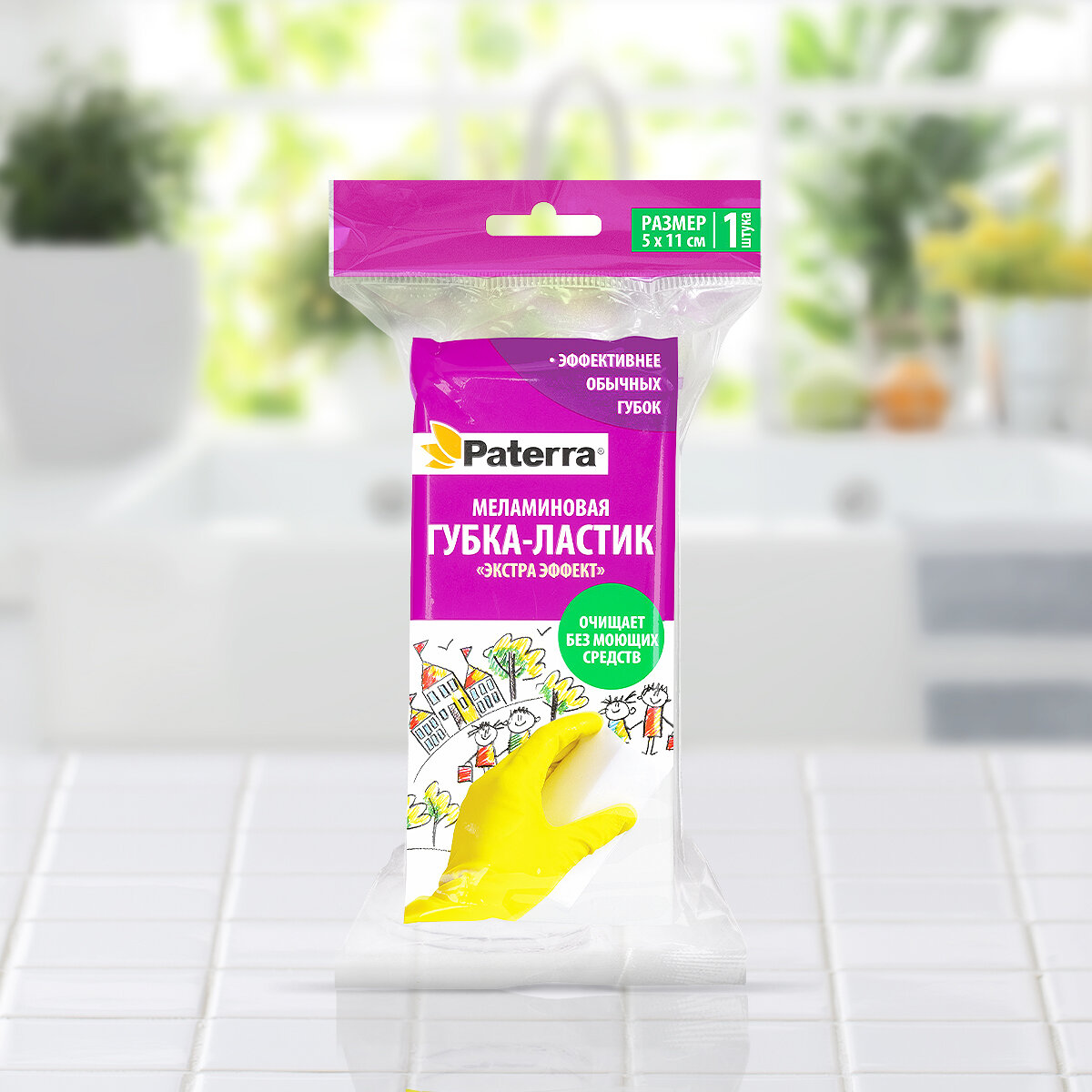 Меламиновая губка PATERRA 1шт Extra Эффект ластик