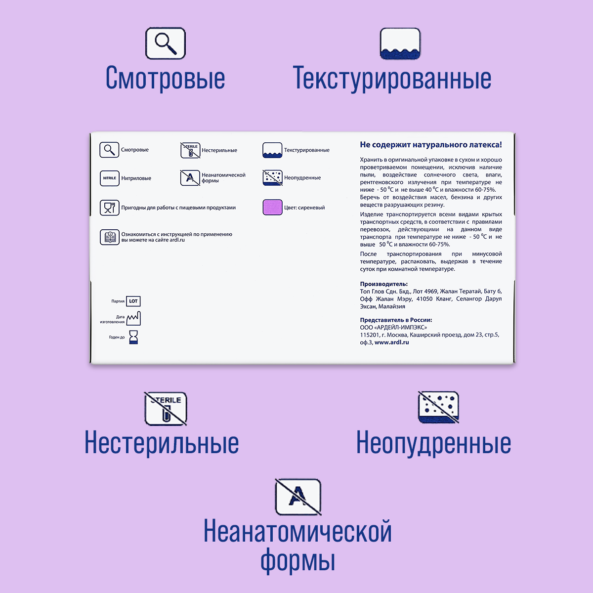 СохранитьПерчатки нитриловые сиреневые NitriMAX 77T S 50 пар интересное: