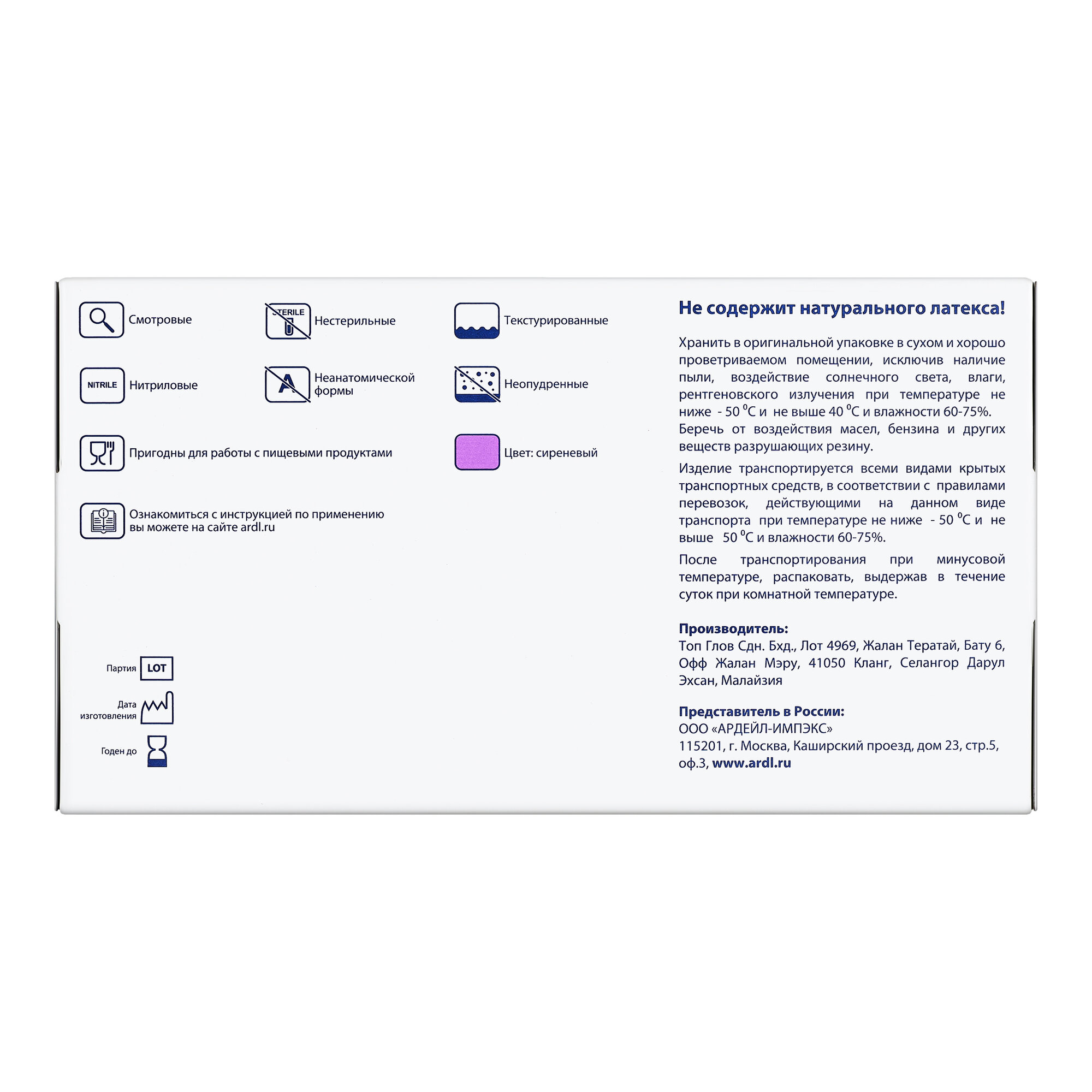 Перчатки одноразовые медицинские Нитриловые Archdale NitriMAX,Сиреневые,L, 100 штук/50 пар, Неопудренные, Гипоаллергенные