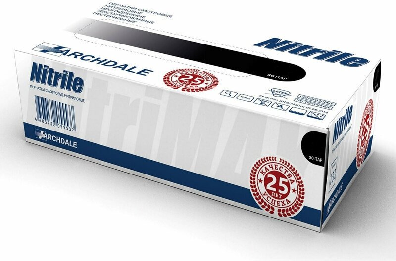 Archdale Nitrile Перчатки одноразовые, нитриловые, неопудренные черные NitriMAX, XS 50 пар