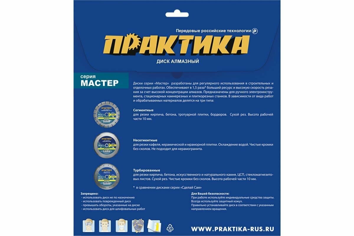 Диск алмазный отрезной ПРАКТИКА Мастер 030-757, 230 мм, 1 шт.